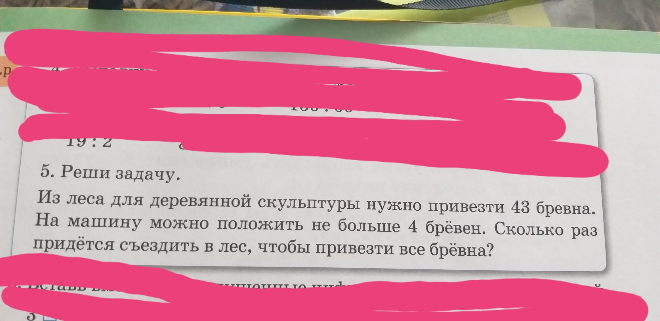 Найдем количество раз/машин, за которые можно перевезти 43 бревна: