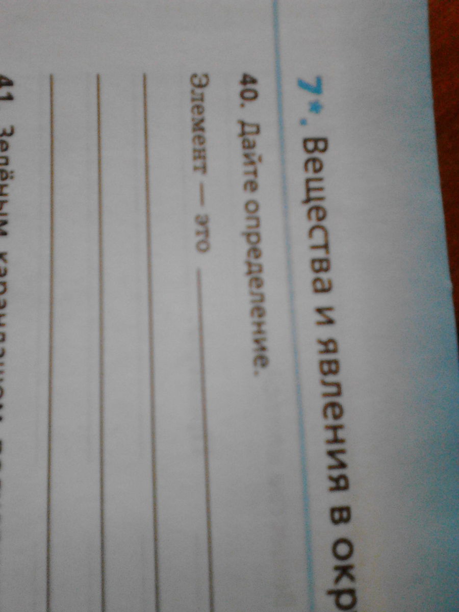 Элемент - это часть целого . б) Признак в содержании чего-л. 3) Простое вещество, не разложимое обычными химическими способами на еще более простые составляющие.