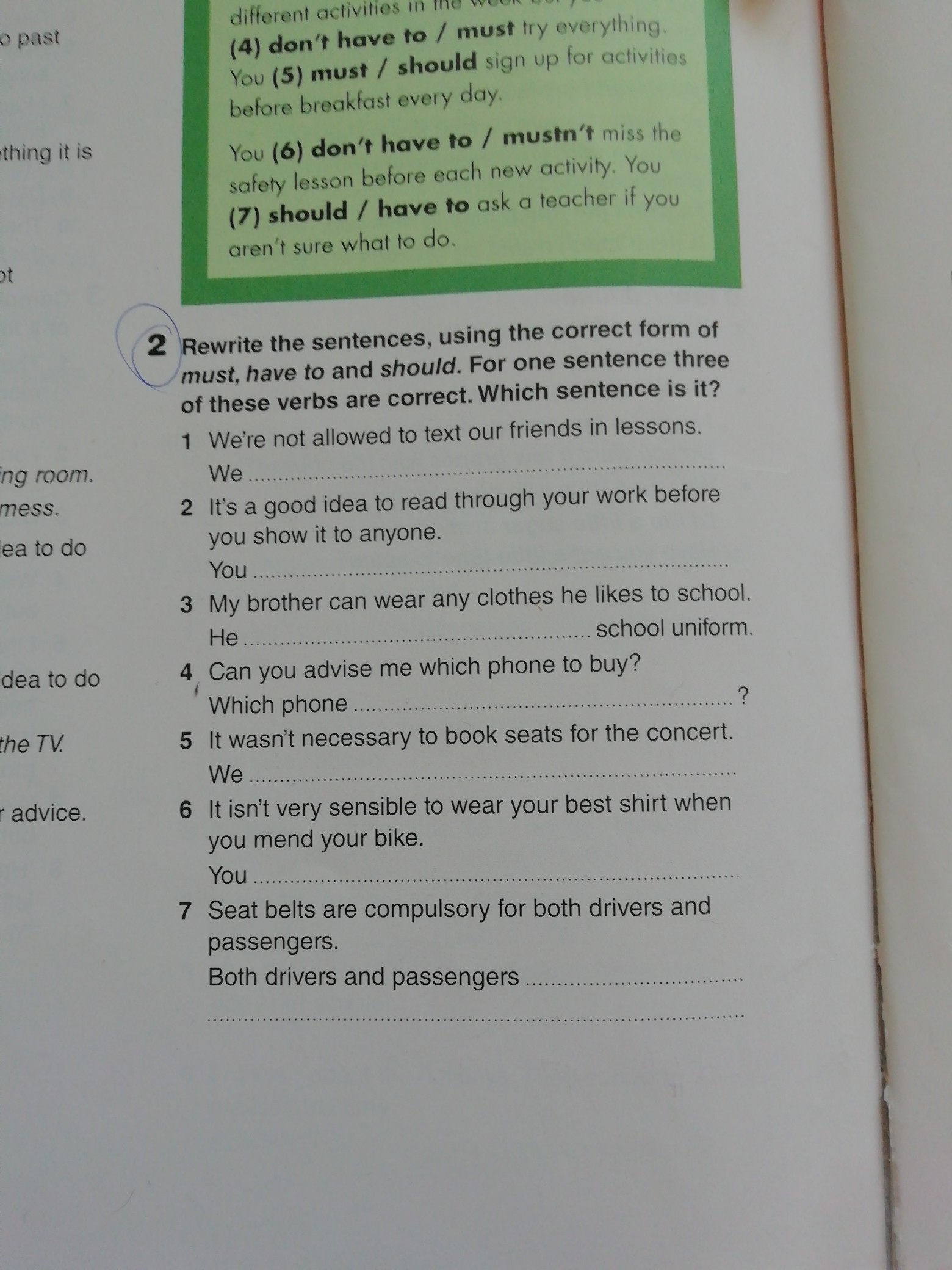 1. We mustn't text our friends in lessons