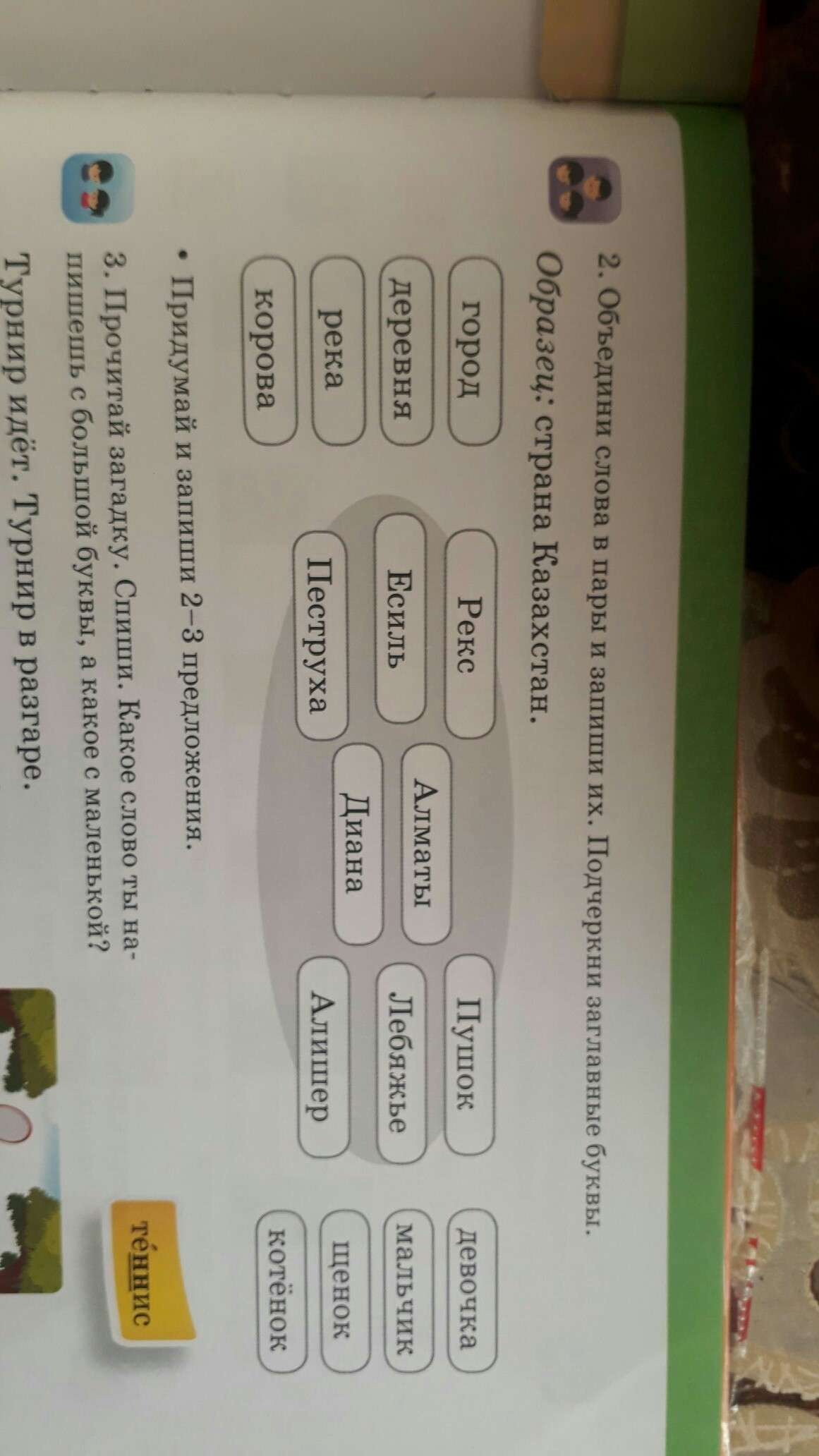 Город Алматы, деревня Пеструха, город Есиль, девочка Диана, мальчик Алишер, щенок Рекс, котёнок Пушок, деревня Лебяжье.