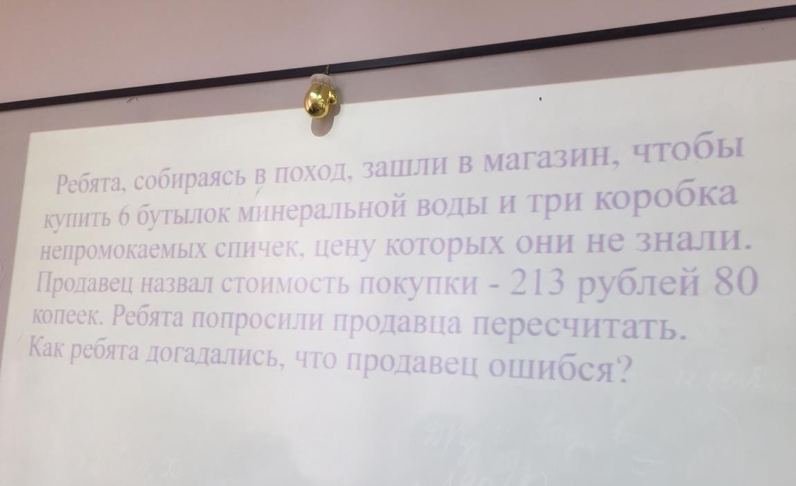 если куплено 6 бут воды и 3 коробки спичек, то сумма должна делиться на 3, а число 213р80 к не делится на 3 (так как сумма цифр в этом числе 2+1+3+8 = 14 не делится на 3, значит и само число не делится на 3, поэтому они догадались, что продавец ошибся