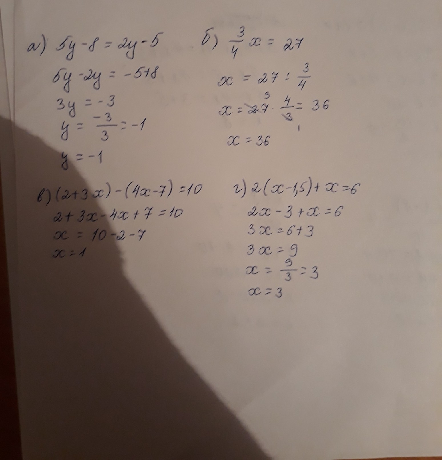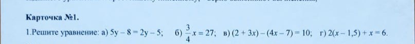 а) 5у – 8 = 2у – 5