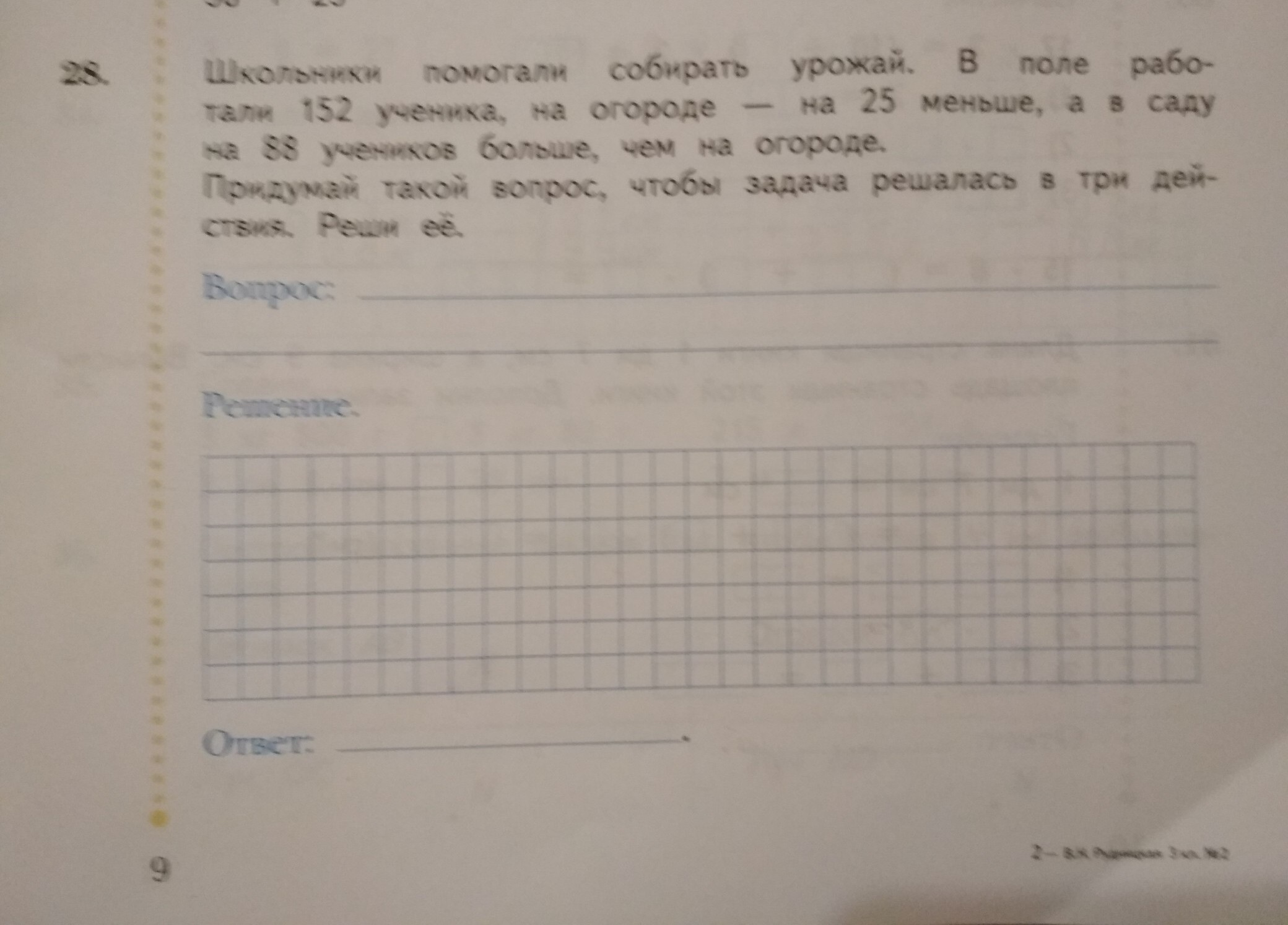 3)152+127+215=494 школьника всего помогали собирать урожай