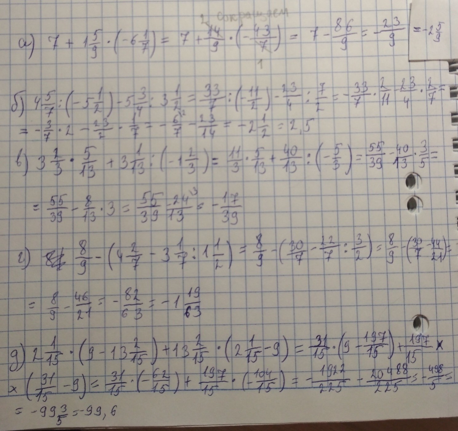 д) 2 1/15*(9-13 2/15)+13 2/15*(2 1/15-9)=