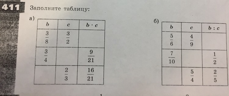 в а первая строчка девять шестых на второй строчке четыре седьмых, а на третьей строчке восемь седьмых. А в б на первой строчке пятнадцать восьмых на второй семь пятых, а на третьей двадцать пять восьмых