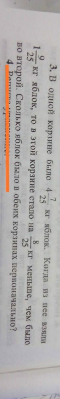 3) 4 7/25 + 3 6/25 = 7 13/25 кг - было первоначально в обеих корзинах