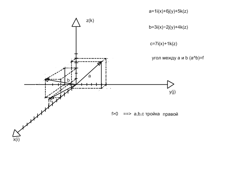 a,b,c => f>0 =>тройка правой