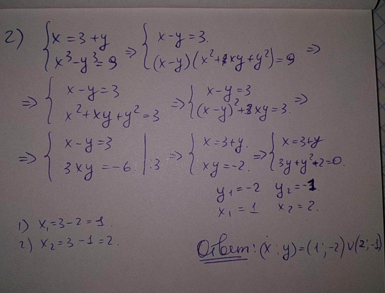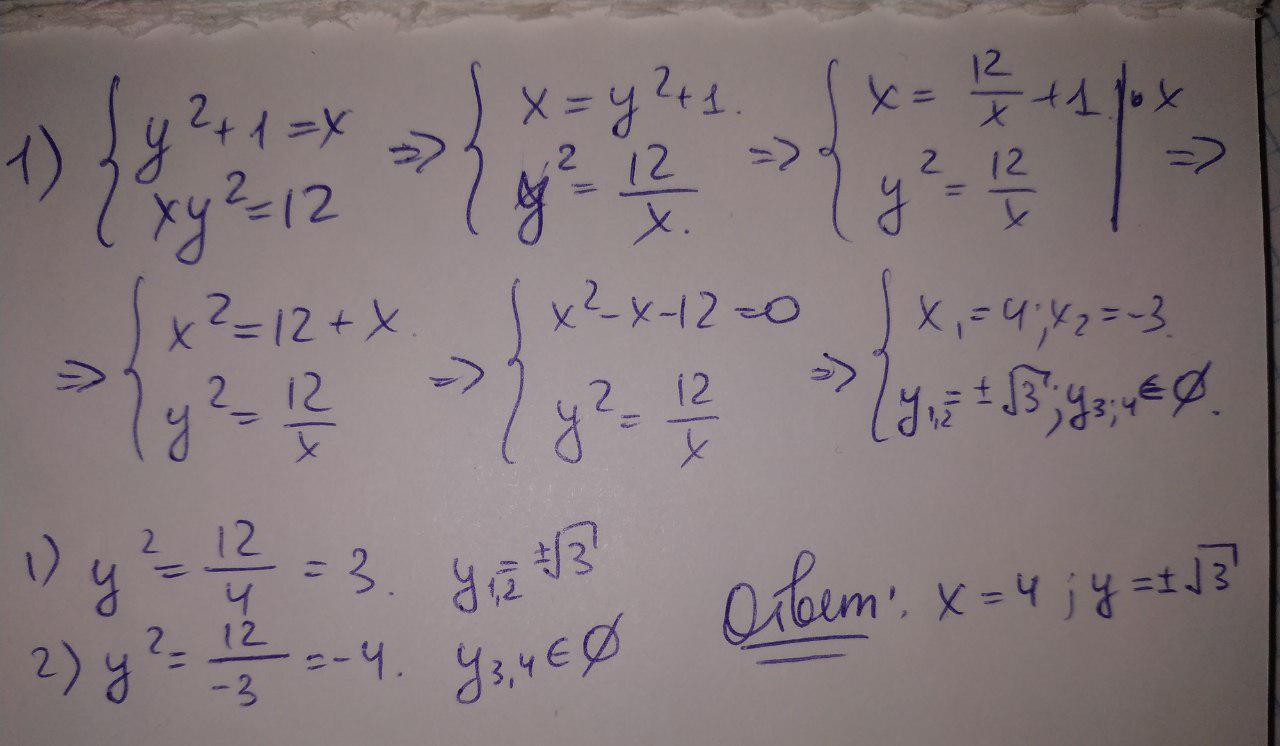Времени не хватило на 3ий, но могу дать подсказку: из 2ого ур-ия находишь x^2 и подставляешь в 1ое уравнение. Не бойся 4ой степени, они сократятся. Прощу прощения за нерешённый пример.