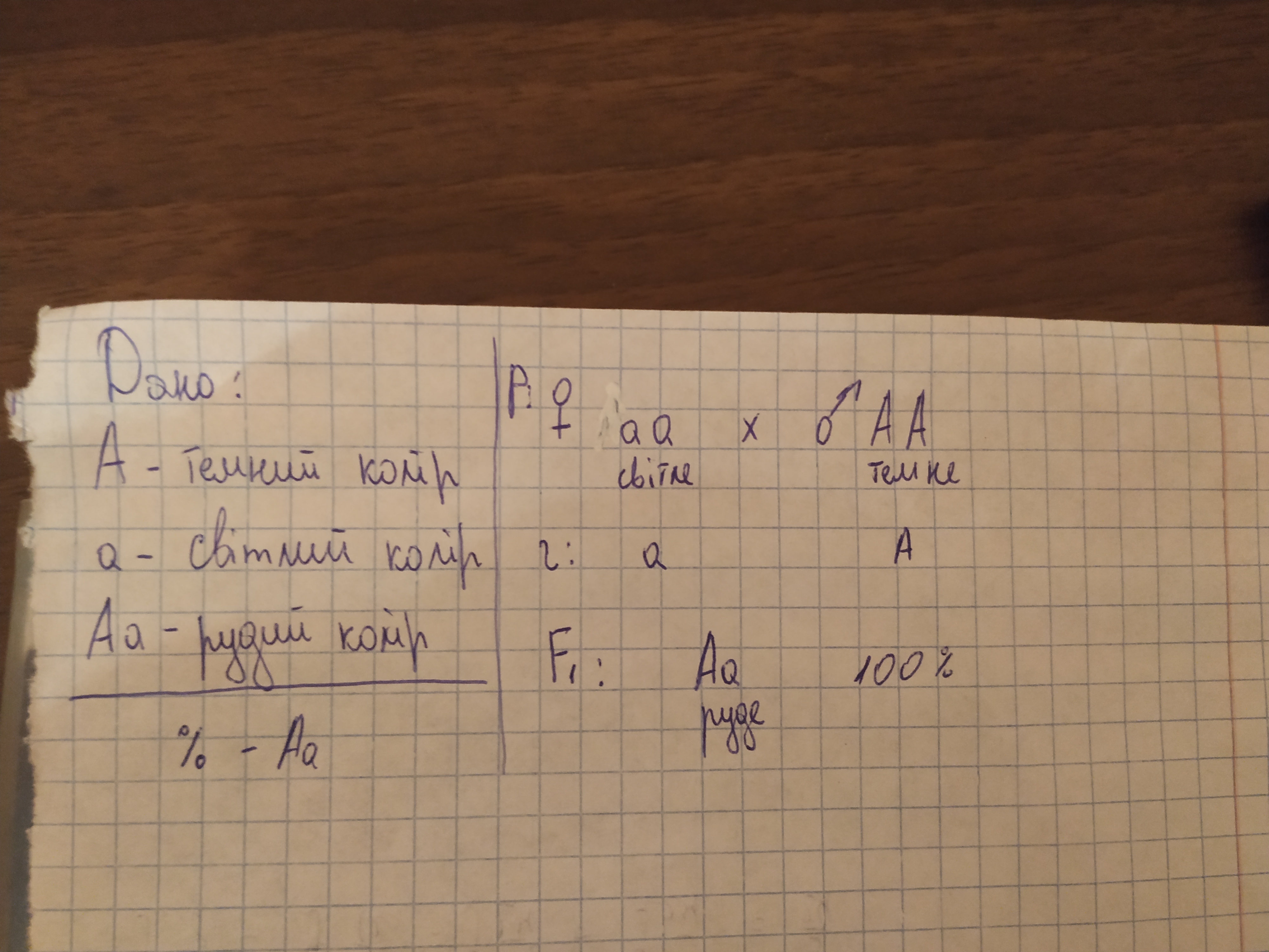 Ген що визначає в людини темний колір волосся домінує над геном що визначає світлий колір. Рецесивним по відношенню до кожного з цих генів є ген, зо визначає рудий колір волосся. У сім‘ї , де батько має темне волосся, мати - світле , а перша дитина - руде . Яка ймовірність народження в цій родині ще однієї дитини з рудим волоссям.