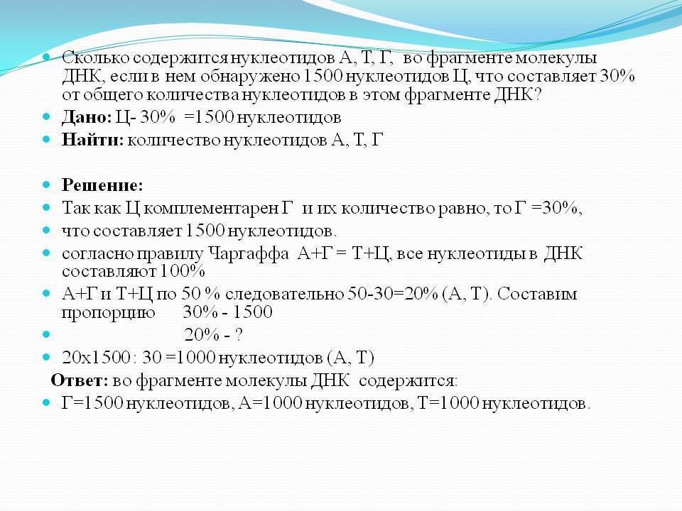 1.Сколько содержится нуклеотидов А, Т, Г, во фрагменте молекулы ДНК, если в нем обнаружено 150 нуклеотидов Ц, что составляет 8% от общего количества нуклеотидов в этом фрагменте ДНК?