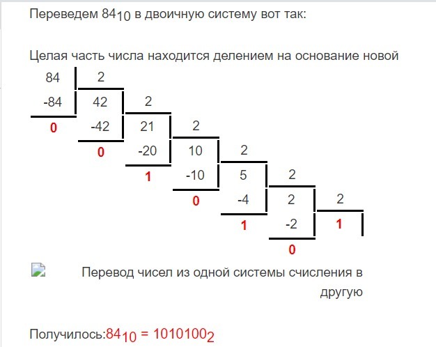 84 = 64×1 + 32×0 + 16×1+8×0+4×1+2×0+1×0=1010100