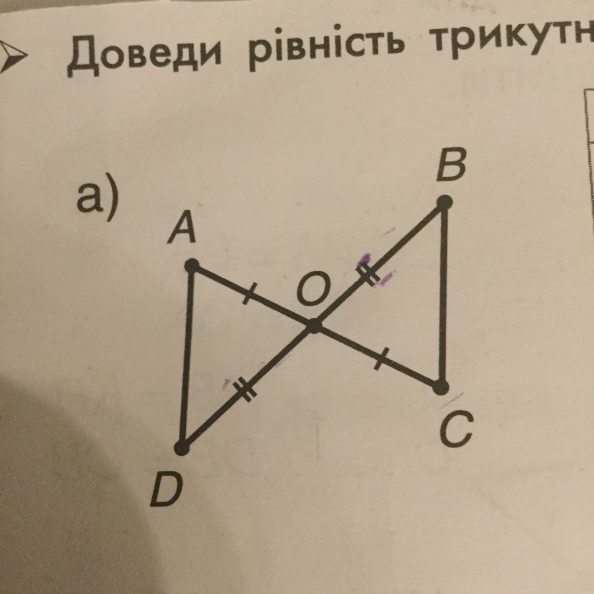 а АО=ОС и DО=ОВ => треуг-ик АОD=треуг. ВОС по 1 признаку.