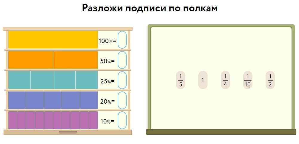 Разложи подписи по полкам