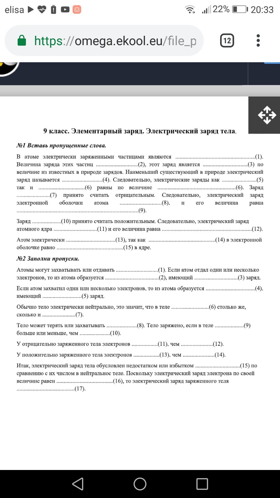 Электризация тел и её проявления. Значительная электризация происходит при трении синтетических тканей. Снимая с себя рубашку из синтетического материала в сухом воздухе, можно слышать характерное потрескивание. Между заряженными участками трущихся поверхностей проскакивают маленькие искорки. С явлением электризации приходится считаться на производстве. Так, нити пряжи на текстильных фабриках электризуются за счёт трения, притягиваются к веретёнам и роликам и рвутся. Пряжа притягивает пыль и загрязняется. В типографиях происходит электризация бумаги при печати, и листы слипаются. Чтобы это не происходило, применяют специальные устройства для стекания заряда. Однако электризация тел при тесном контакте иногда используется, например, в различных электрокопировальных установках и др. Закон сохранения электрического заряда. Опыт с электризацией пластин доказывает, что при электризации трением происходит перераспределение имеющихся зарядов между телами, до этого нейтральными. Небольшая часть электронов переходит с одного тела на другое. При этом новые частицы не возникают, а существовавшие ранее не исчезают. При электризации тел выполняется закон сохранения электрического заряда. Этот закон справедлив для системы, в которую не входят извне и из которой не выходят наружу заряженные частицы, т. е. для изолированной системы. В изолированной системе алгебраическая сумма зарядов всех тел сохраняется. q1 + q2 + q3 + ... + qn = const. (14.1) где q1, q2 и т. д. - заряды отдельных заряженных тел. Закон сохранения заряда имеет глубокий смысл. Если число заряженных элементарных частиц не меняется, то выполнение закона сохранения заряда очевидно. Но элементарные частицы могут превращаться друг в друга, рождаться и исчезать, давая жизнь новым частицам. Однако во всех случаях заряженные частицы рождаются только парами с одинаковыми по модулю и противоположными по знаку зарядами; исчезают заряженные частицы тоже только парами, превращаясь в нейтральные. И во всех этих случаях алгебраическая сумма зарядов остаётся одной и той же. Справедливость закона сохранения заряда подтверждают наблюдения над огромным числом превращений элементарных частиц. Этот закон выражает одно из самых фундаментальных свойств электрического заряда. Причина сохранения заряда до сих пор неизвестна.