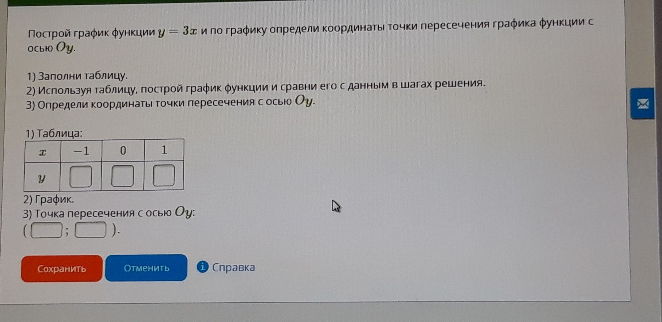 График пересекает оу в точке (0;0)