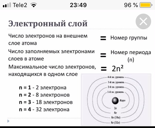 2. Сколько электронных слоев у атома элемента, расположенного во втором периоде?