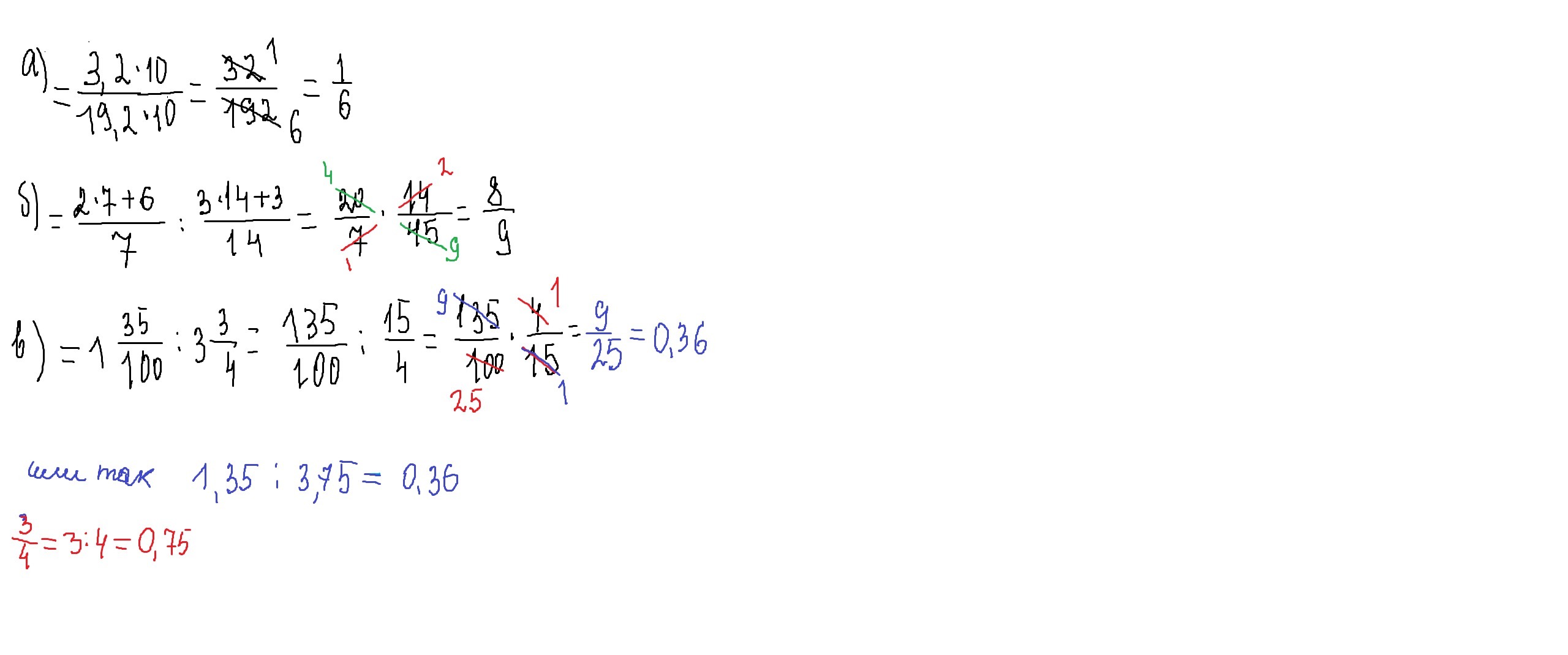 в 1 примере избавимся от запятых,умножим на 10,потом сокращаем.