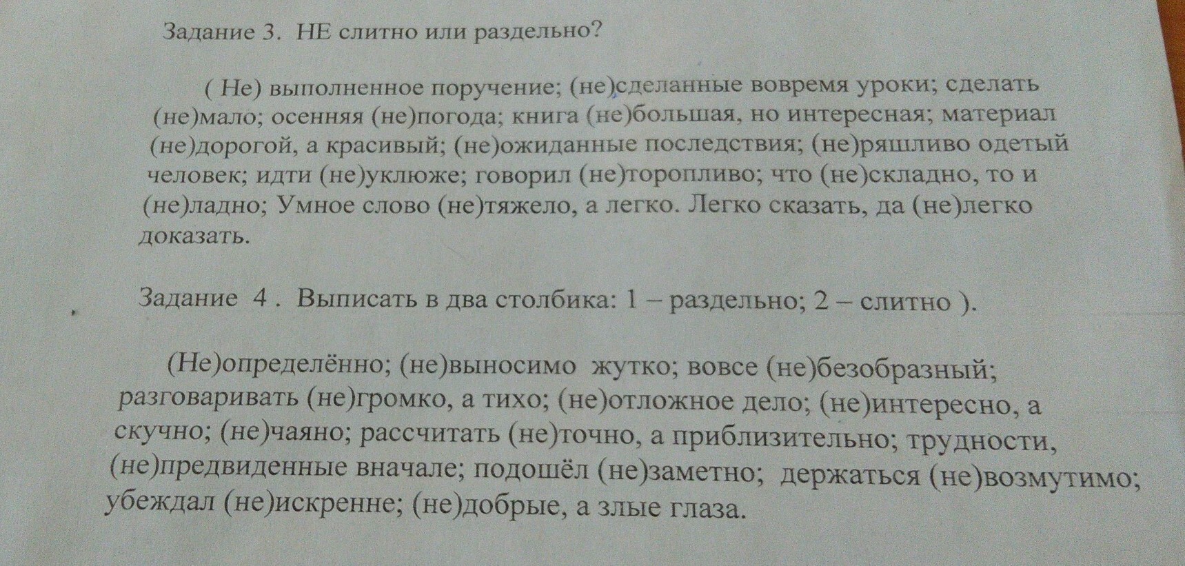 Невыполненное, несделанные, не мало, не погода, не большая, не дорогой, неожиданные, неряшливо, неуклюже, неторопливо, нескладно, неладно, не тяжело, не легко.