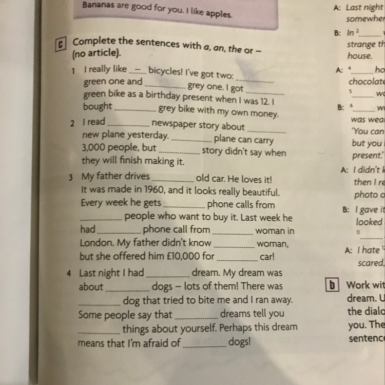 3) My father drives an old car. He loves it! It was made in 1960, and it looks really beautiful. Every weeks he gets phone calls from people who want to buy it. Last week he had a phone call from a woman in London. My father didn't know the woman, but she offered him £10,000 for the car!