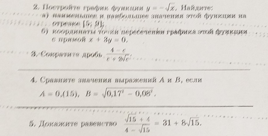 строить график по точкам (0;0), (1;-1), (4;-2), (9;-3) у=-Vx у(5)=-V5(наиб.),