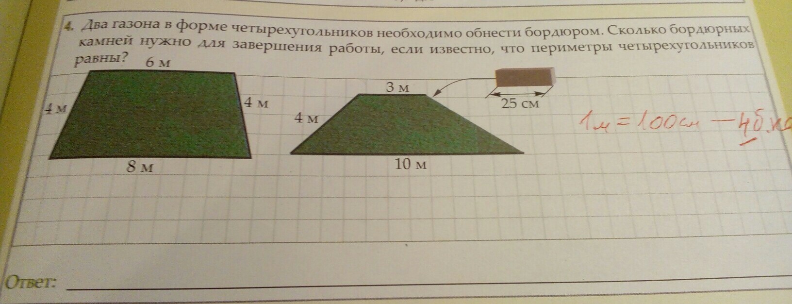значит 44 метра необходимо обнести. в одном метре 100 сантиметров, значит в 44 метрах 4400 сантиметров.