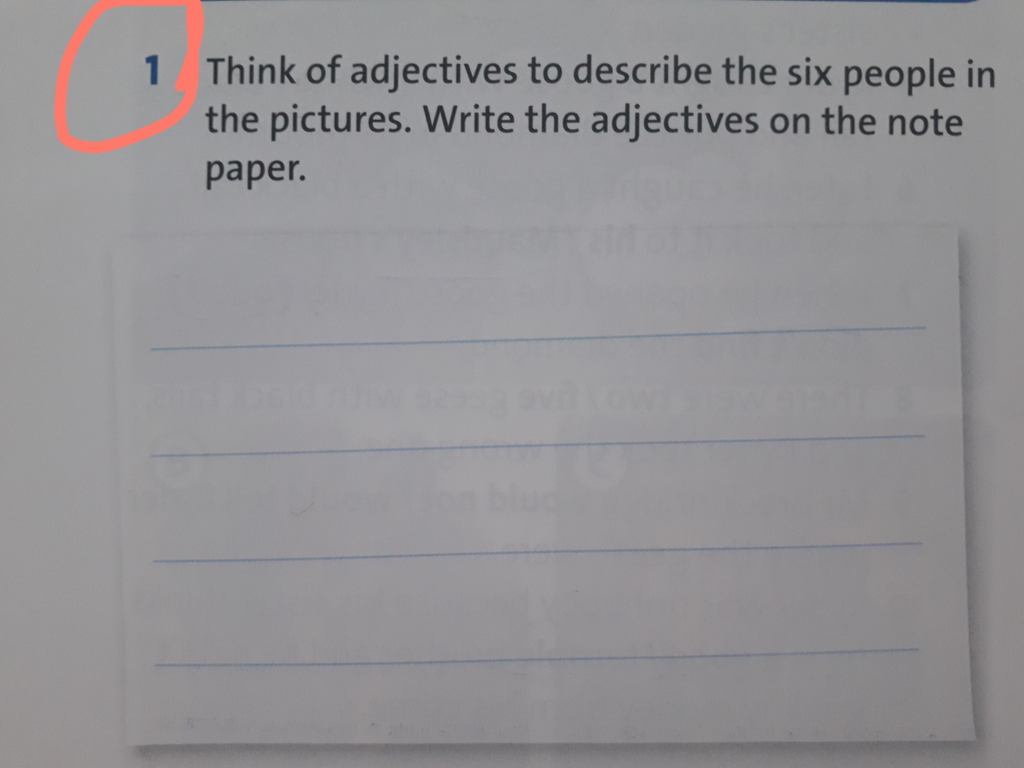 Подумайте о прилагательных, чтобы описать шесть человек на картинках. Напишите прилагательные на бумаге для заметок.