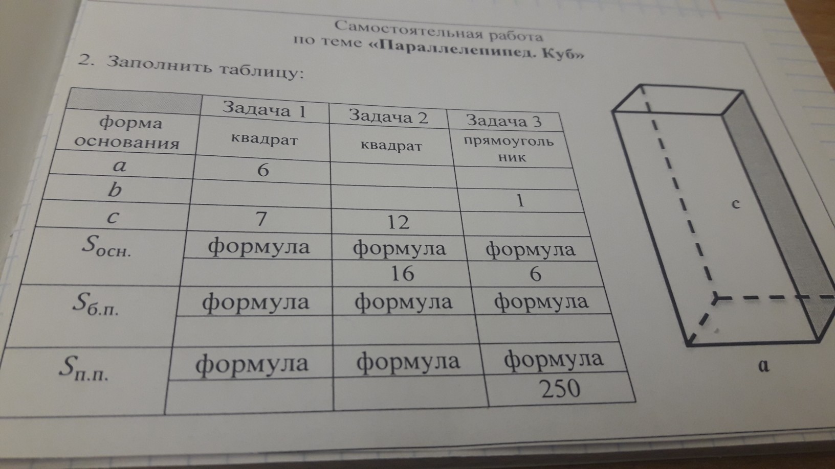 Ну надо заполнить таблицу где пусто, типо надо найти S основание