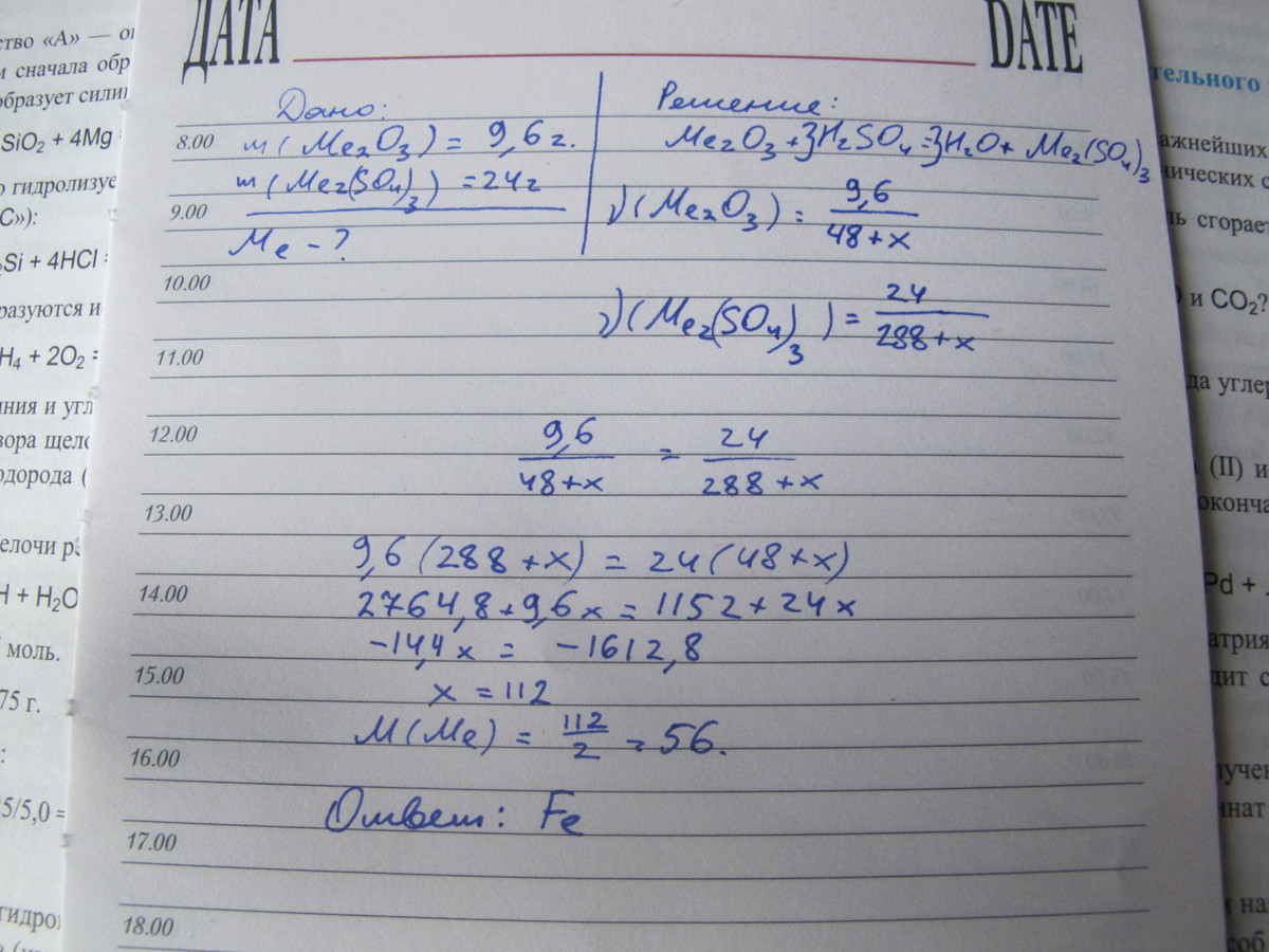 При взаимодействии 9,6 г оксида металла (III) с серной кислотой образуется 24 г сульфата металла (III). Определите металл.
