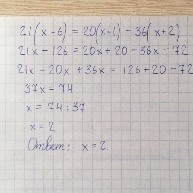 потом выполняем действия в правой части (-36х-20х; -72+20)