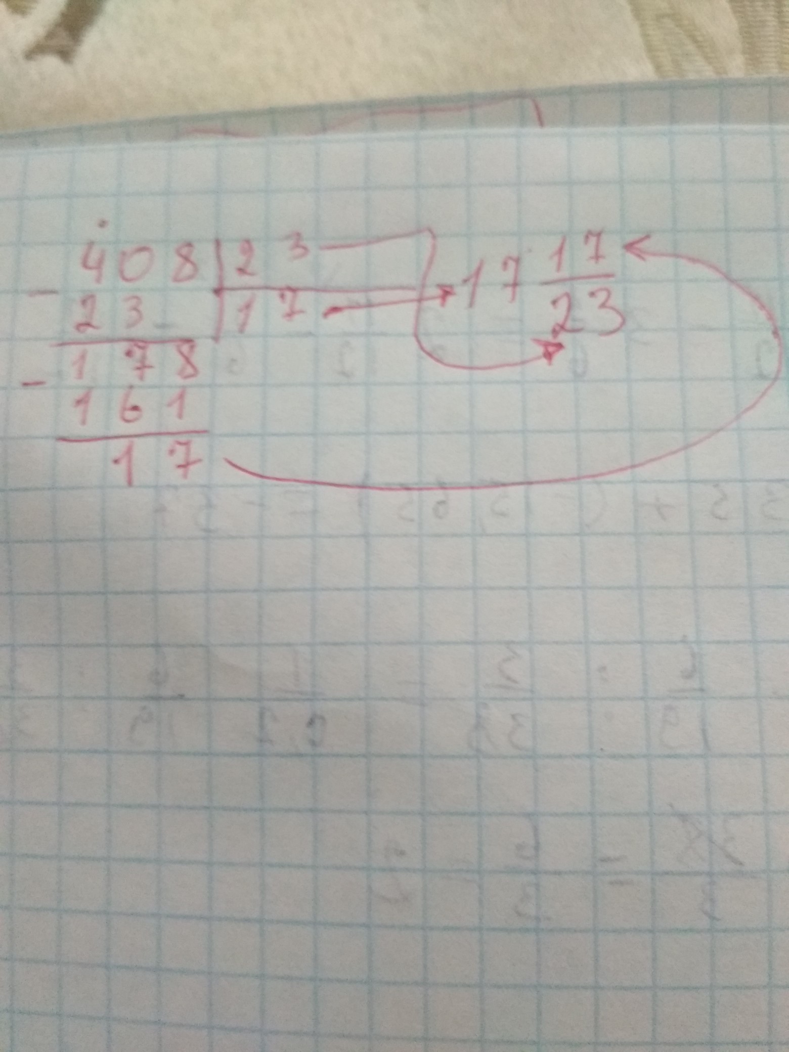 Остаток от деления записать в числитель, знаменатель оставить прежним.