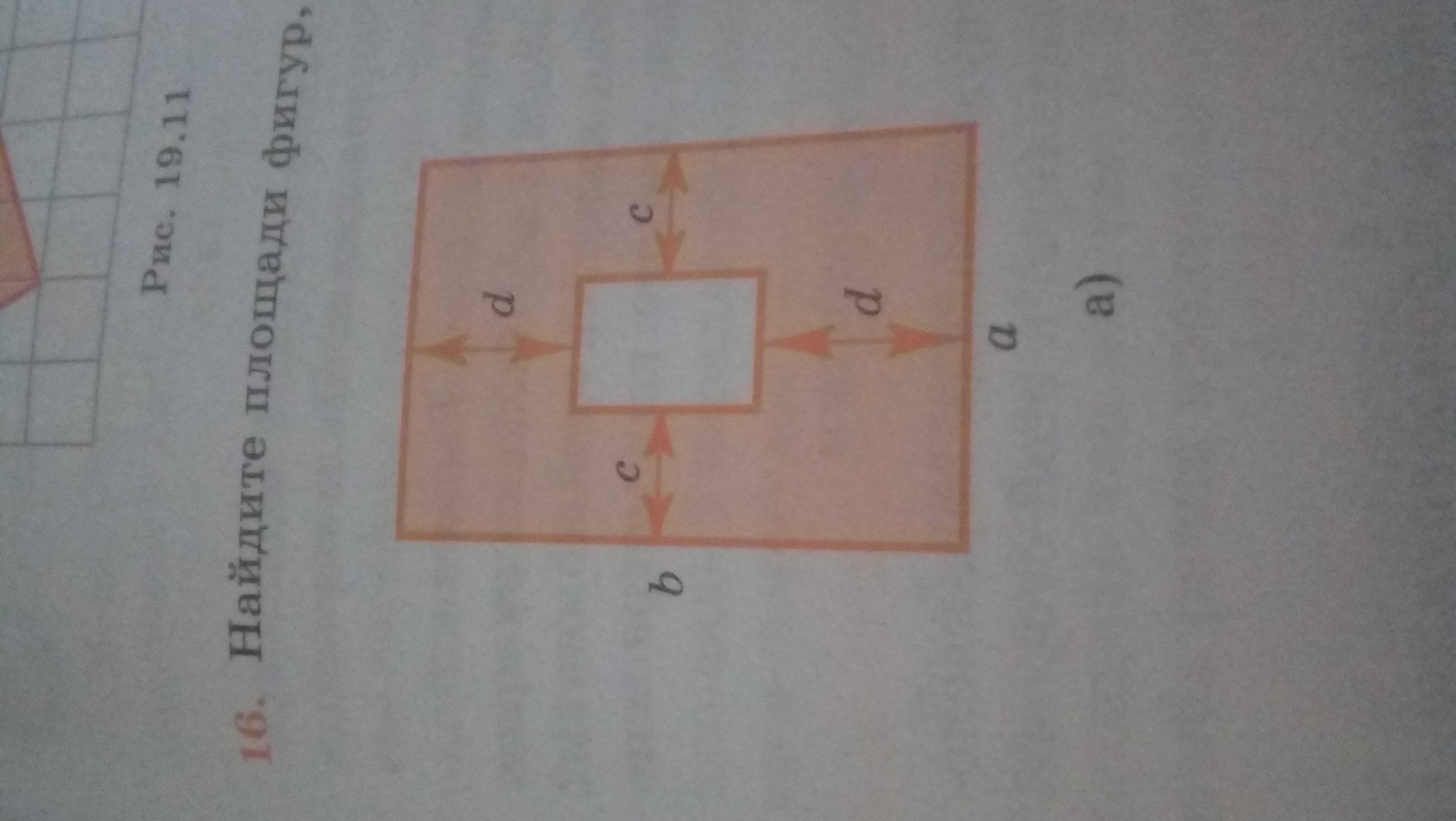 площадь фигуры - ab-(ab-2ad-2bc+4dc)=ab-ab+2ad+2bc-4dc=2(ad+bc)-4dc.