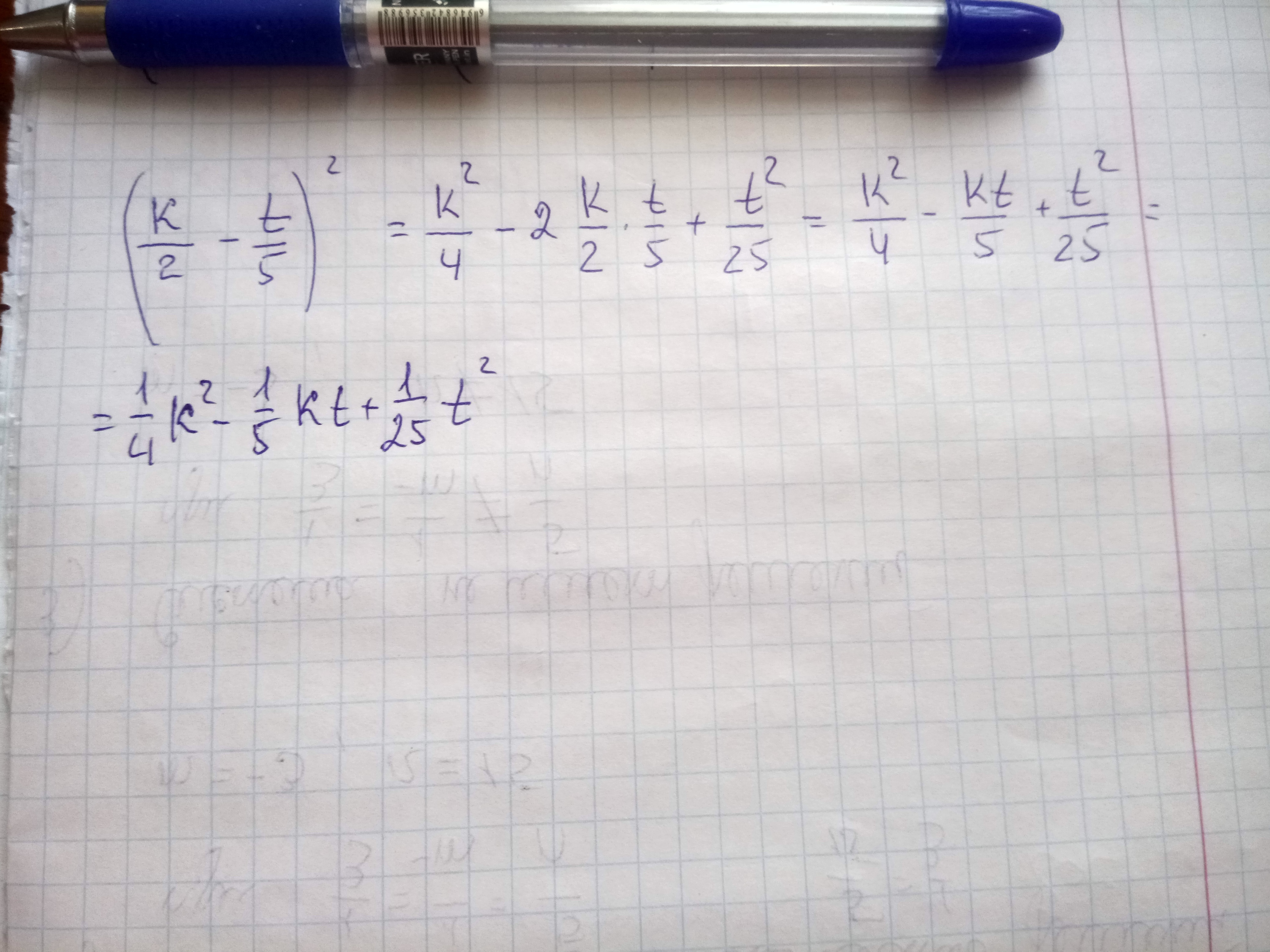 (k/2)^2 - 2*(t/5)(k/2) + (t/5)^2 = (k/2)^2 - (k*t/5)+(t/5)^2