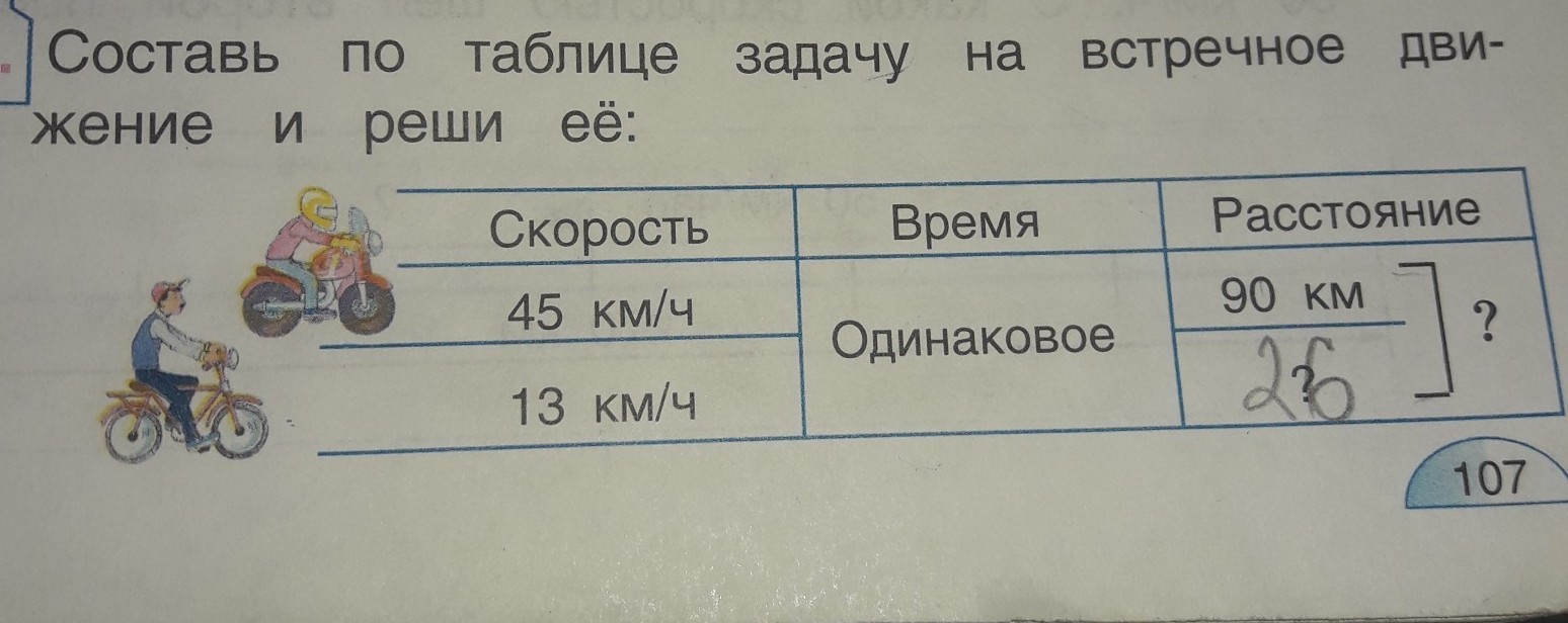 Скорость мотоцикла - 45 kmh, велосипеда - 13 kmh