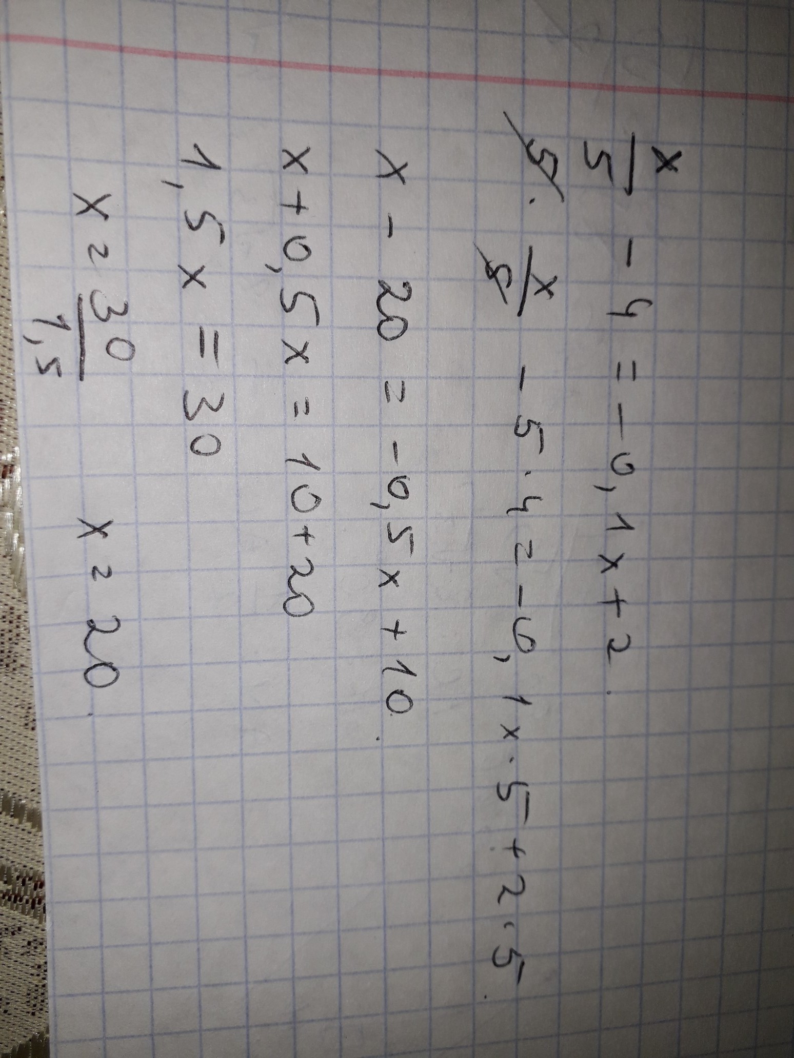 а можешь решить ещё вот это? x/5 - 4= - 0,1x + 2 (если что / это дробь)