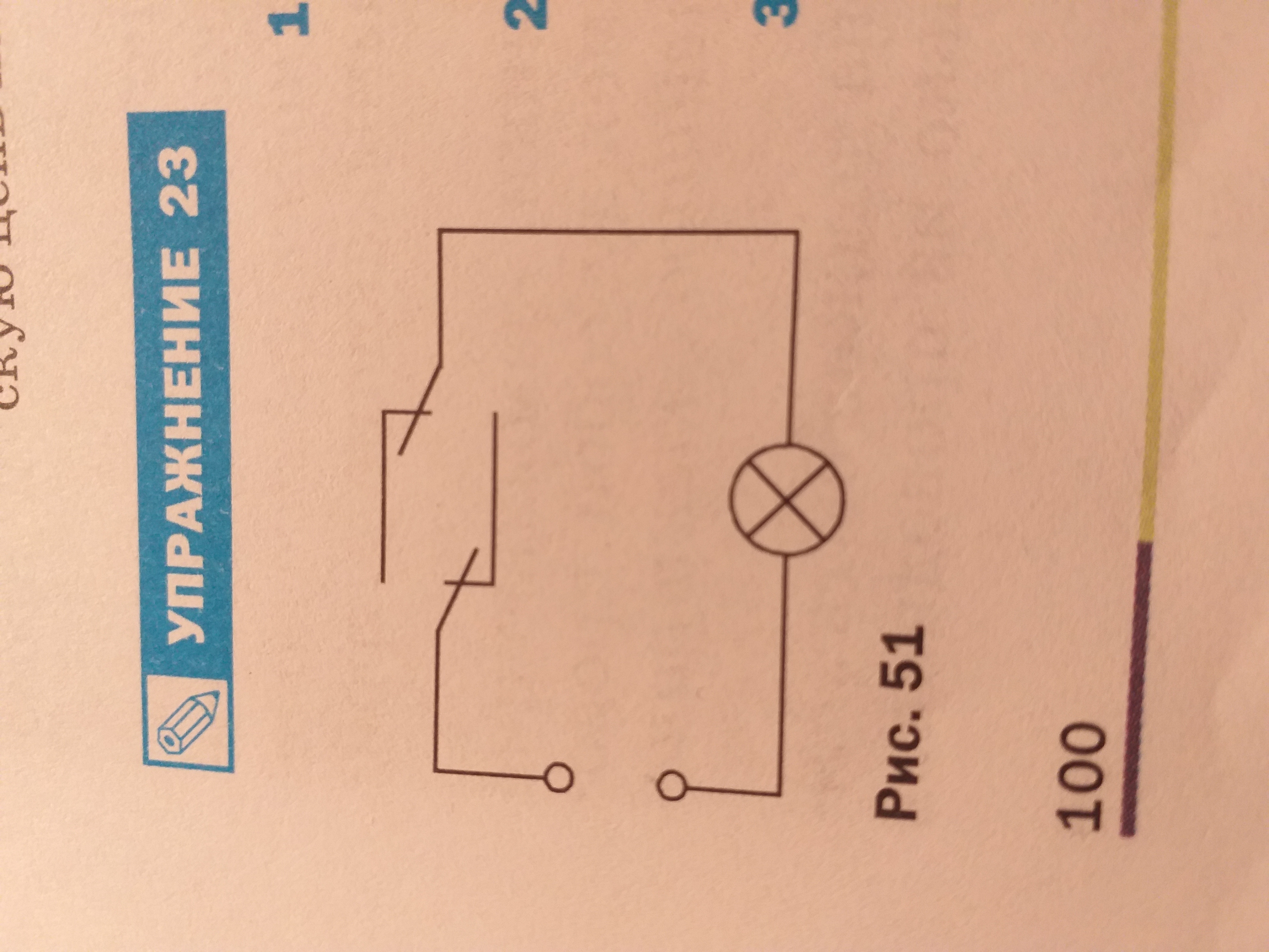 Начертить схему электрической цепи, в которой одна лампа, источник тока и два ключа, при помощи которых можно включать лампу с разных мест.