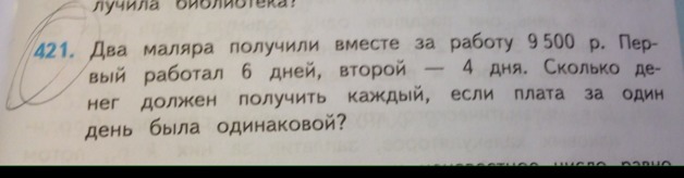 Два работника получили вместе за работу 12000 р. Первый работал 4 дня, второй - 6 дня. Сколько денек должны получить каждый, если плата за один день была одинаковой.