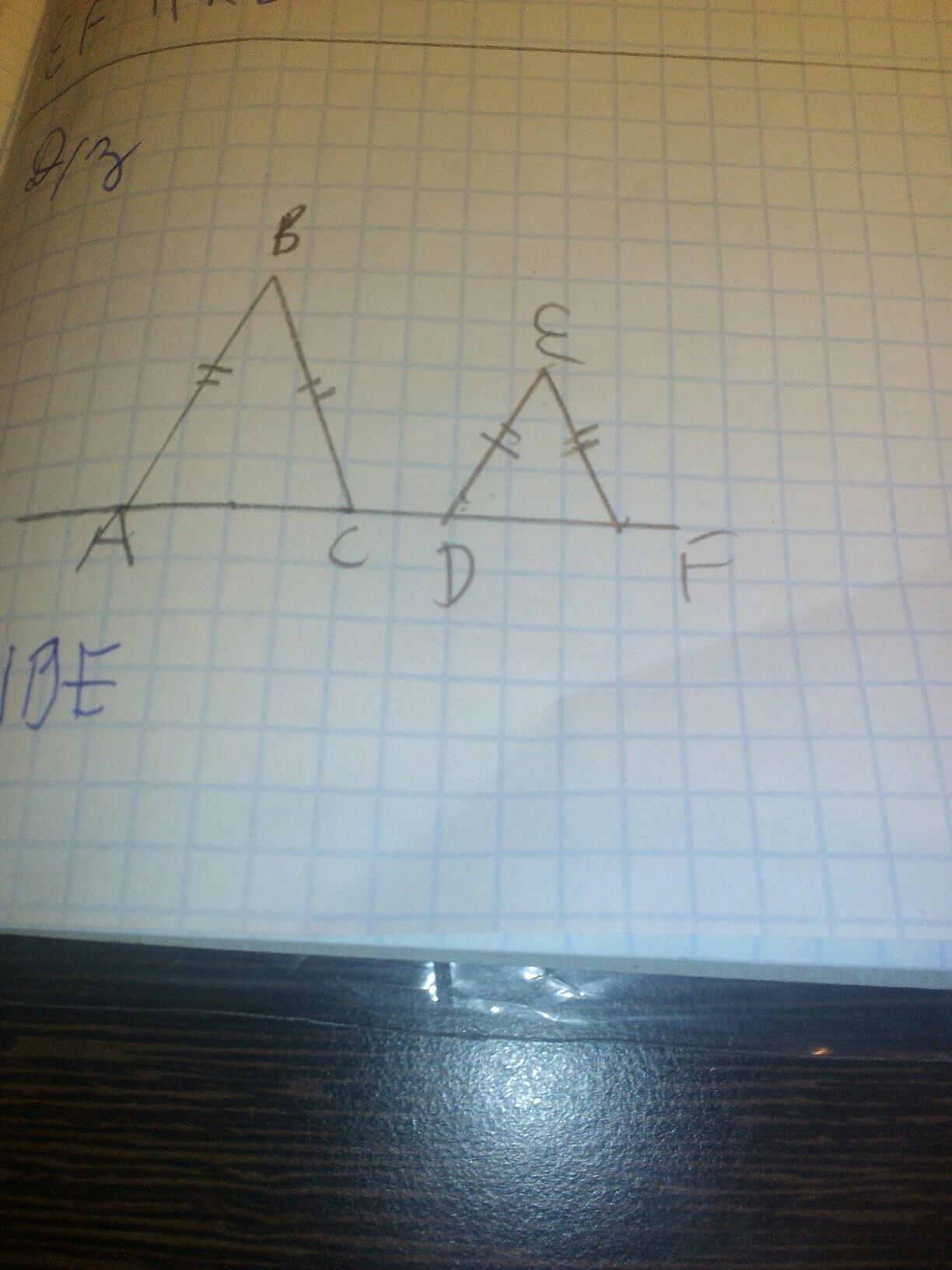 Это два равнобедренных треугольника, соответсвенно равных, поэтому, AB паралалеьно DE