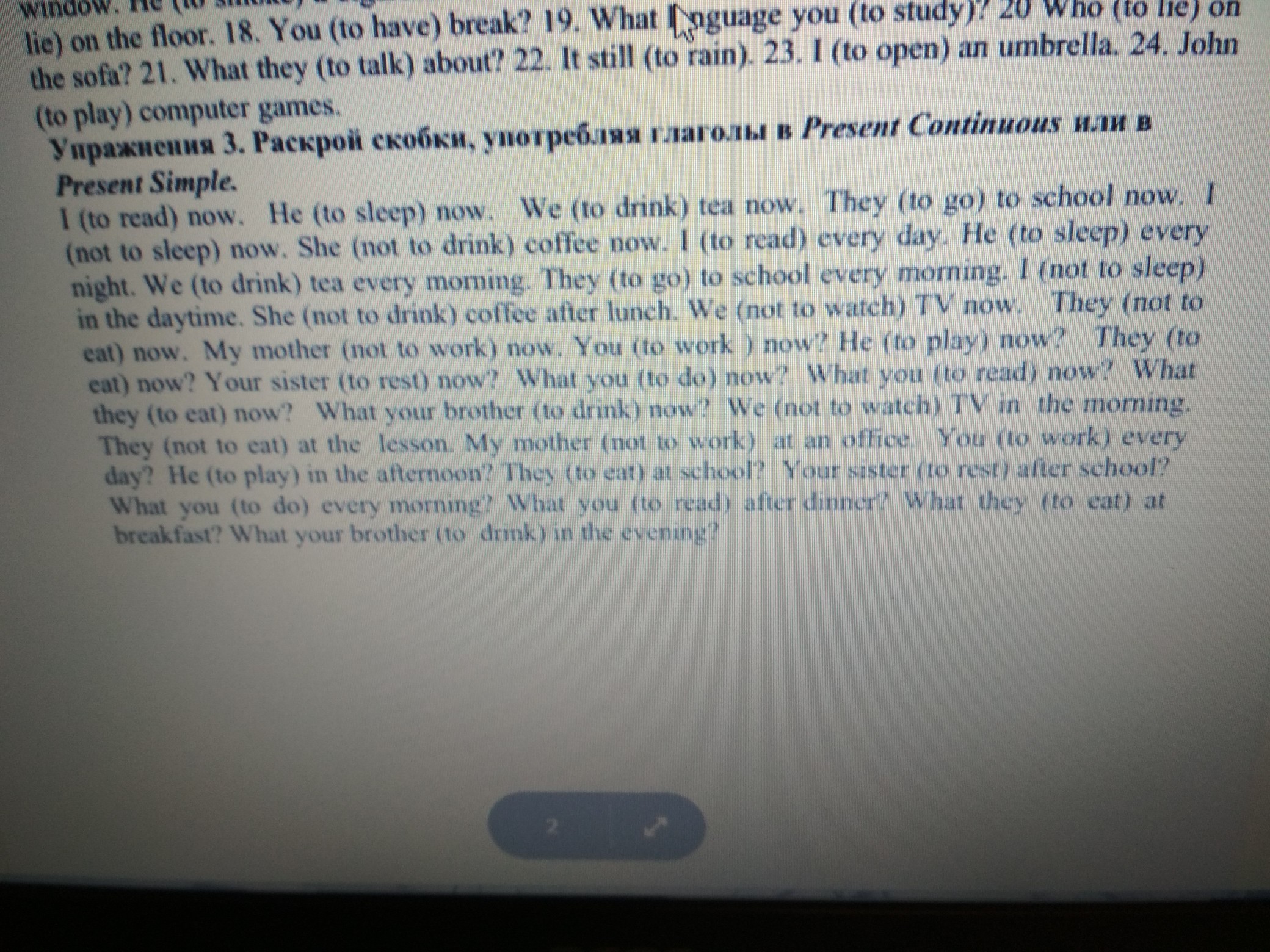 Present Continuous- (am, is,are)+ глагол "ing" Present Simple- (she, he, it) глагол "s,es" (I,you,they,we) глагол " "