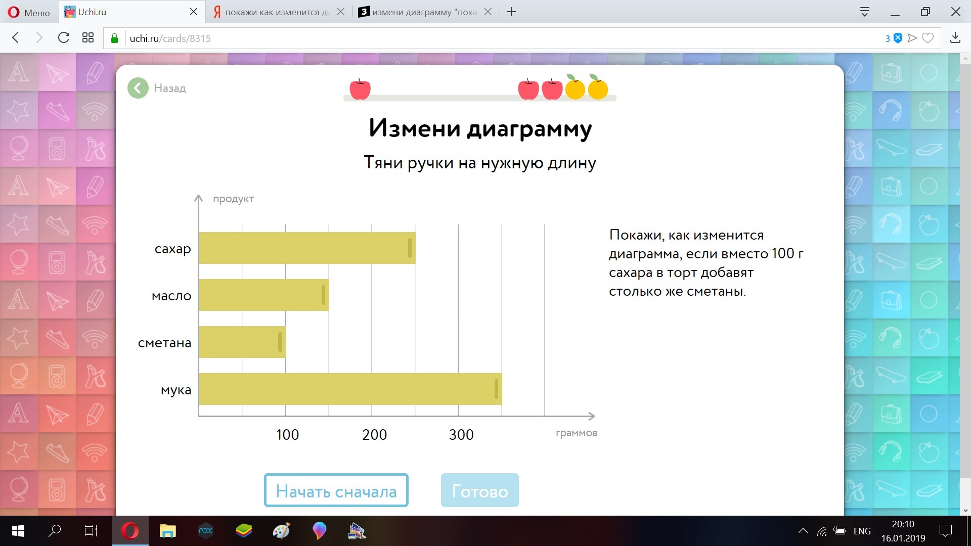Ответ:столбик с сахаром сделай покороче до уровня 100 ( сметаны)