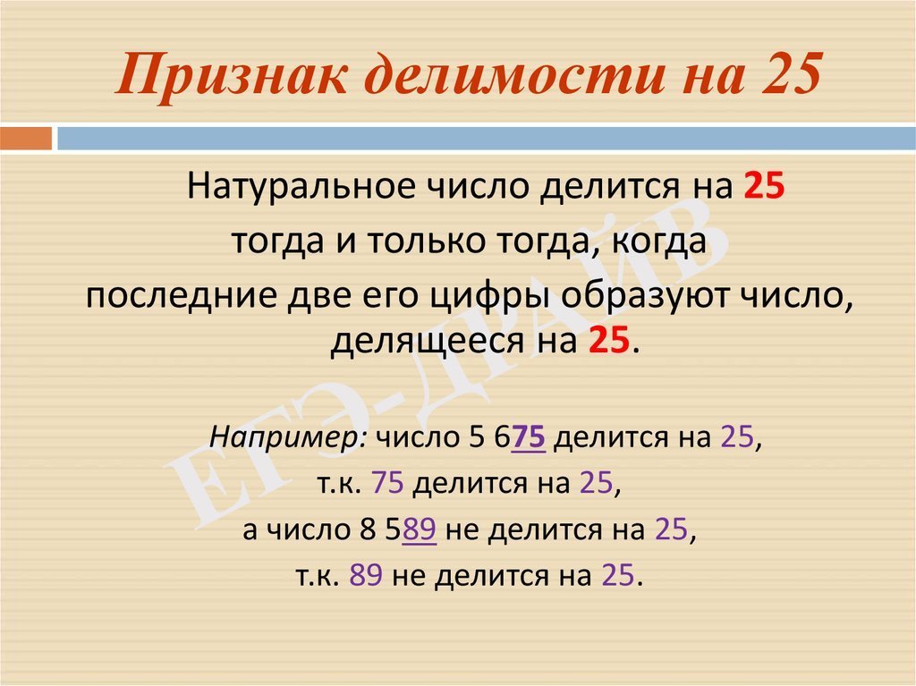 Найти в дополнительной литературе признак делимости на 4 и 25.