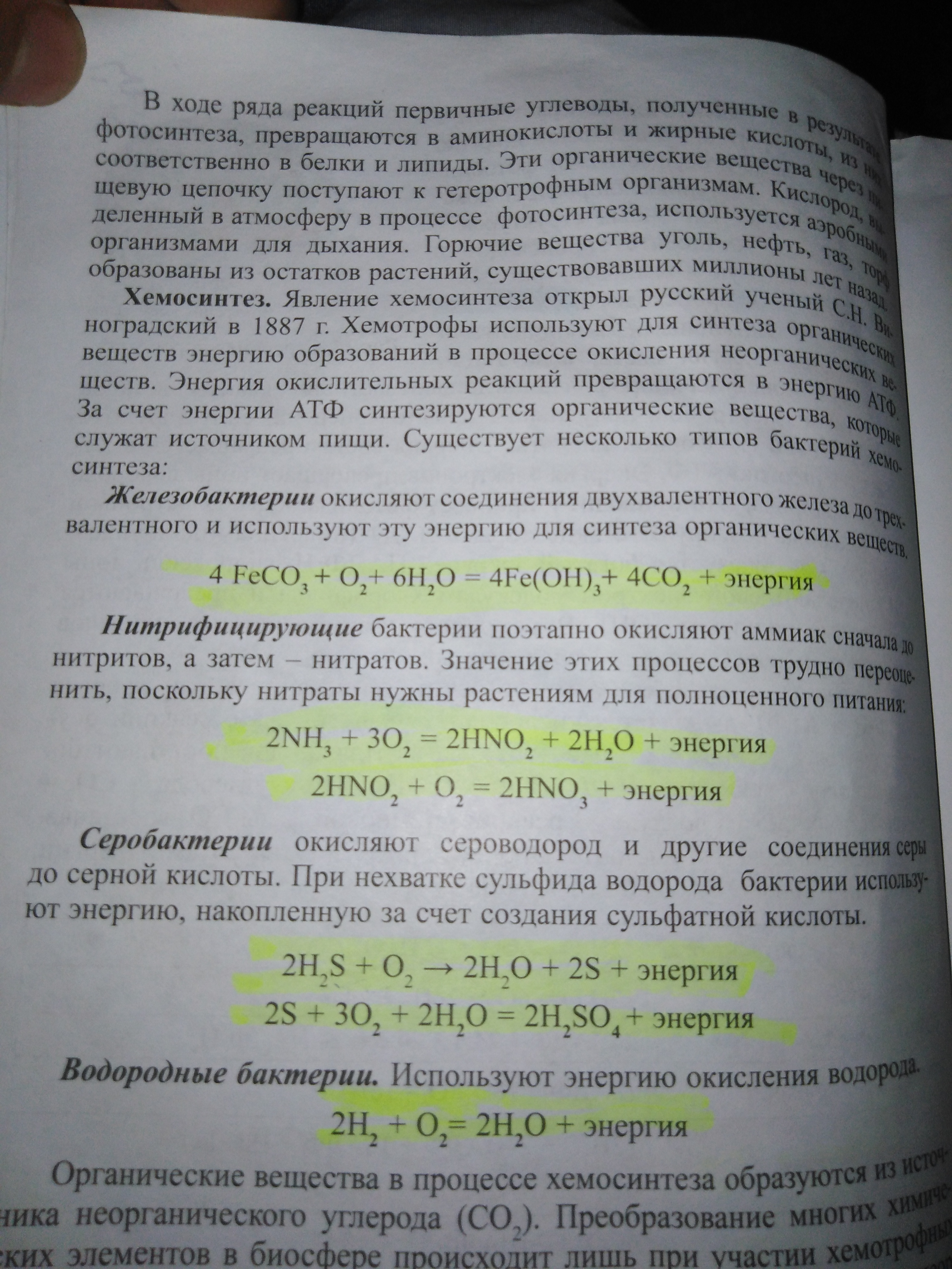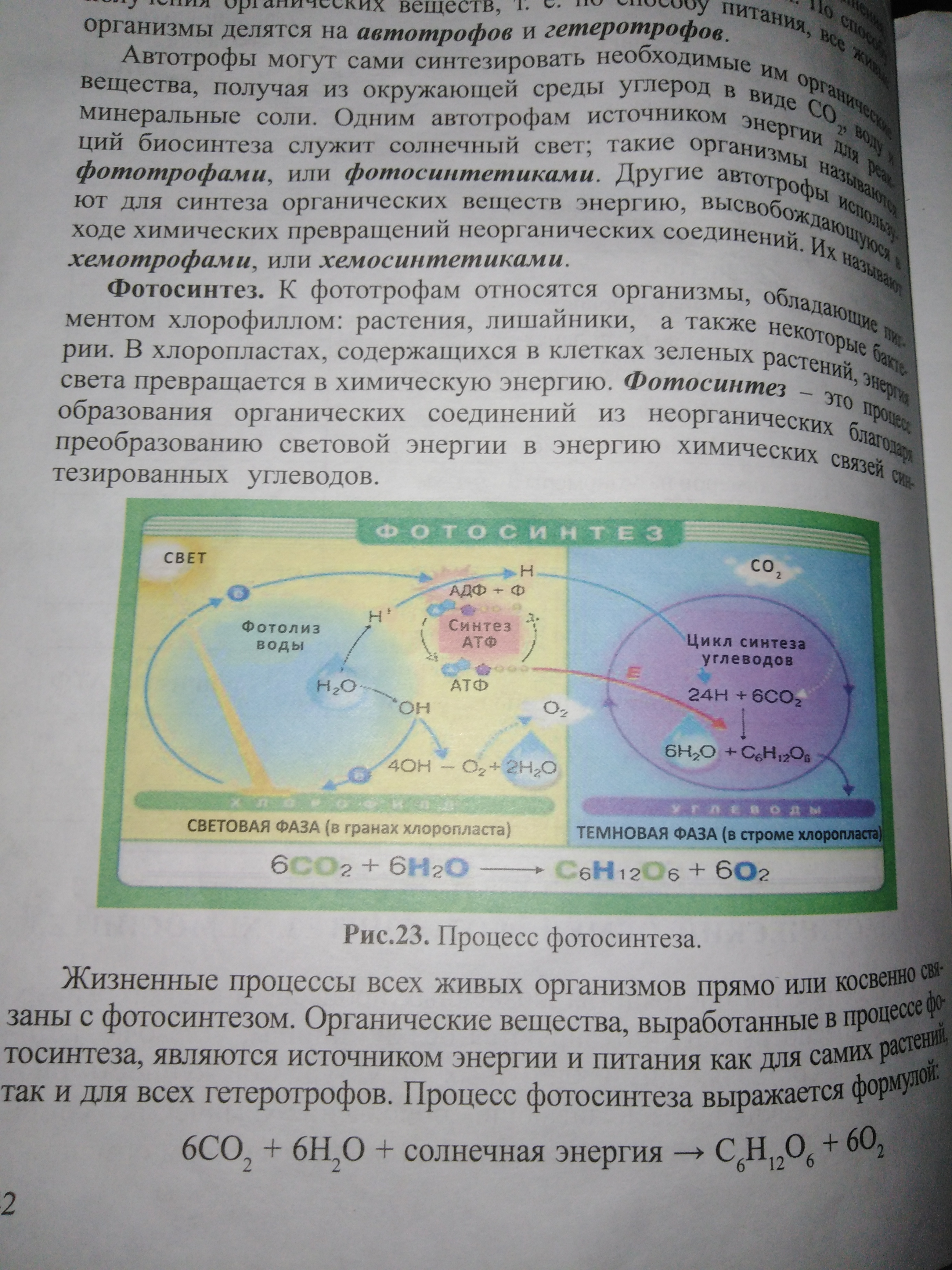 Фотосинтез 6CO2+6H2O+солнечная инергия - C6H12O6