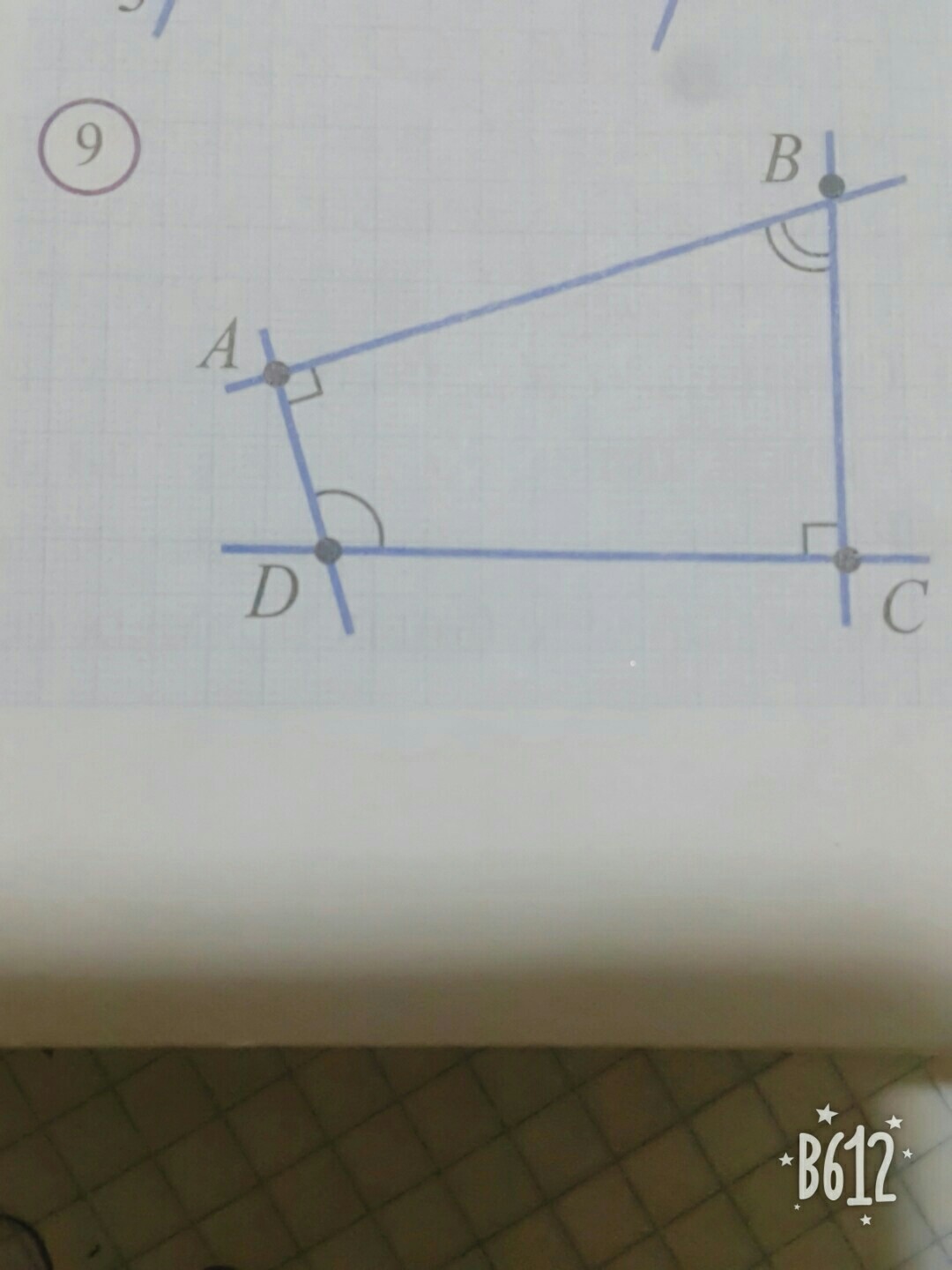 углы А иС на рисунке 9 прямые. Угол D в два раза больше угла В. Найдите эти два угла. срочно нужно