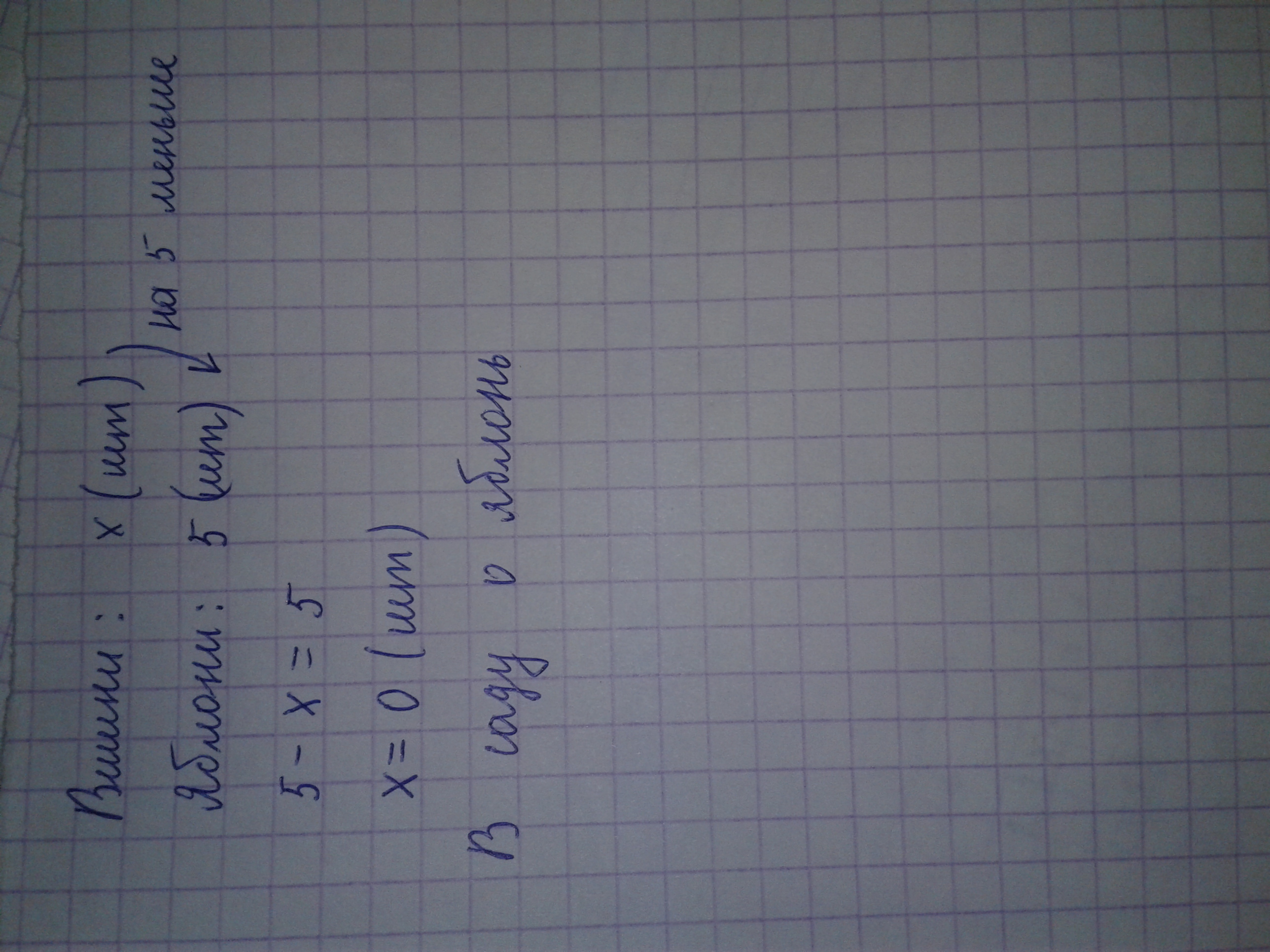 в школьном саду 5 яблонь а вишен на 5 меньше . Сколько вишнёвых деревьев в школьном саду. Составь краткое условие и реши её