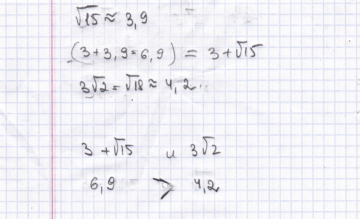 Сравните числа корень из 3 плюс корень из 15 и 3 корня из 2