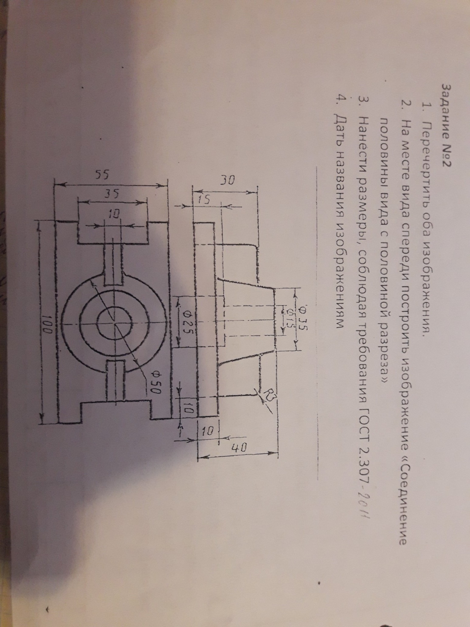 Помогите пожалуйста :на месте вида спереди построить изображение "Соединение половины вида с половиной разреза"