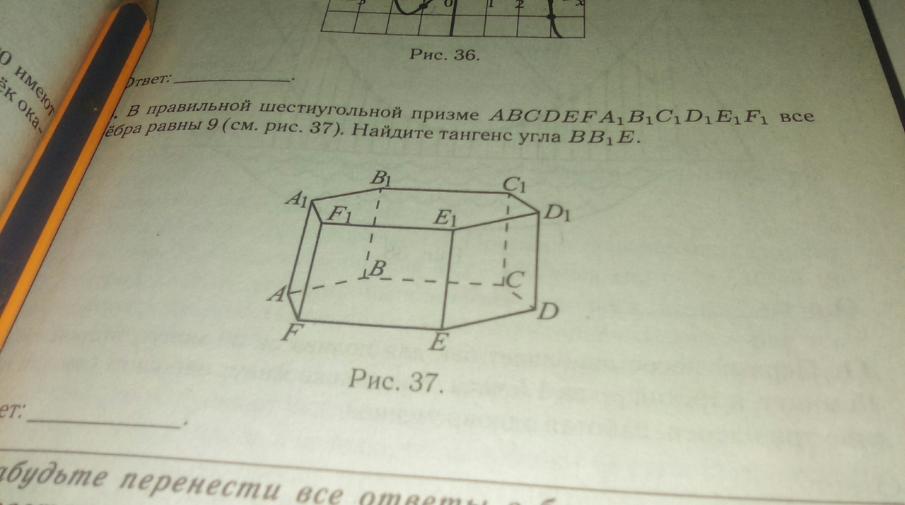 tg ∠BB₁E = BE/BB₁ = 18/9 = 2