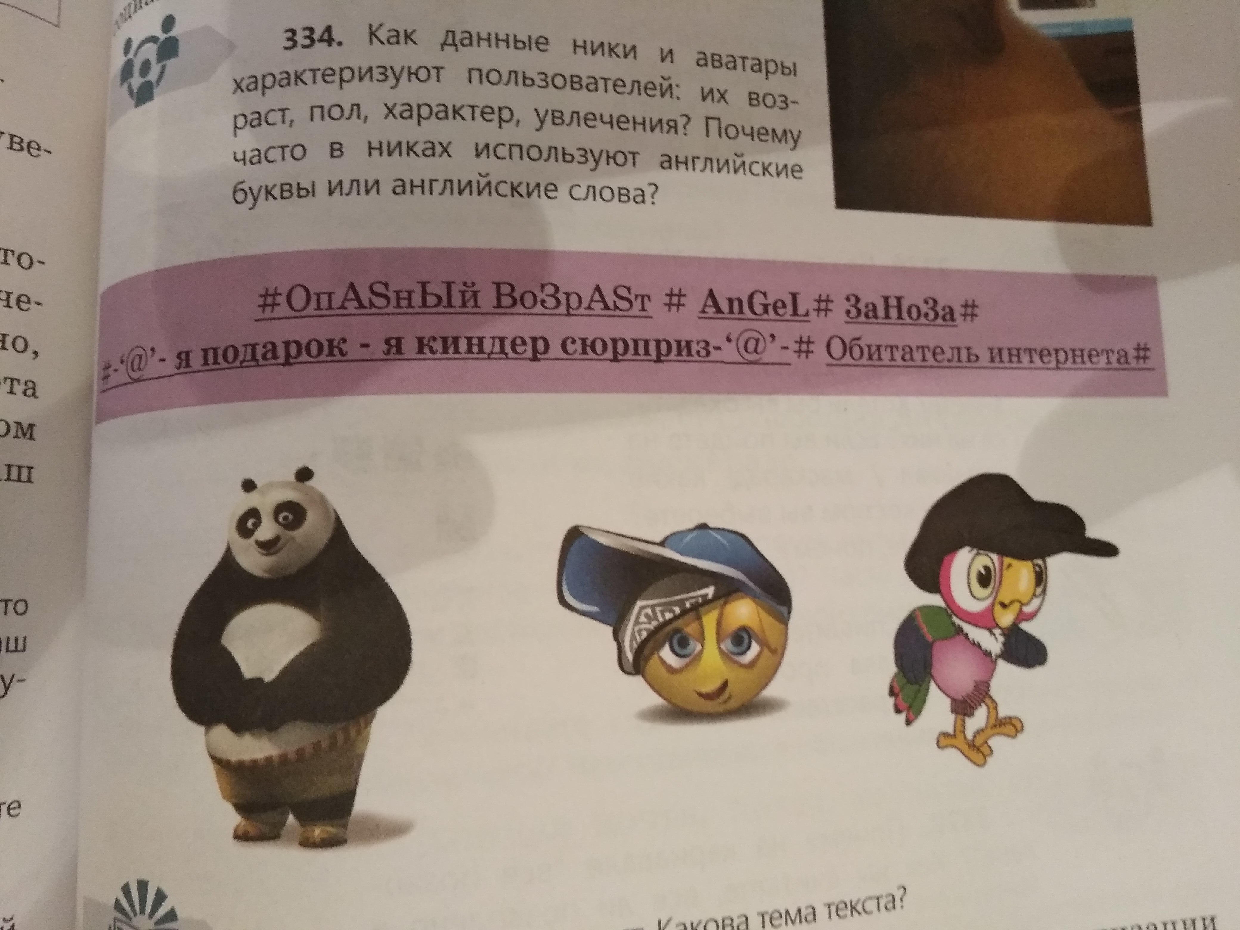 ну наверно опасный возраст это типо панда а смайл это обитатель интернета а попугай это заноза