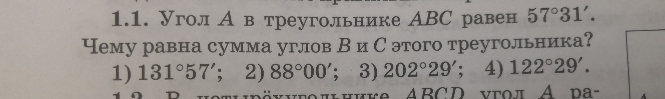Следовательно сумма двух остальных углов равна 180-57°31'=122°29'