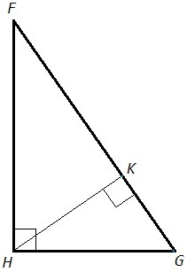 В прямоугольном треугольнике FGH высота HK лежит внутри треугольника. Назовите отрезок длина которого равна расстоянию от точки G до прямой HK.