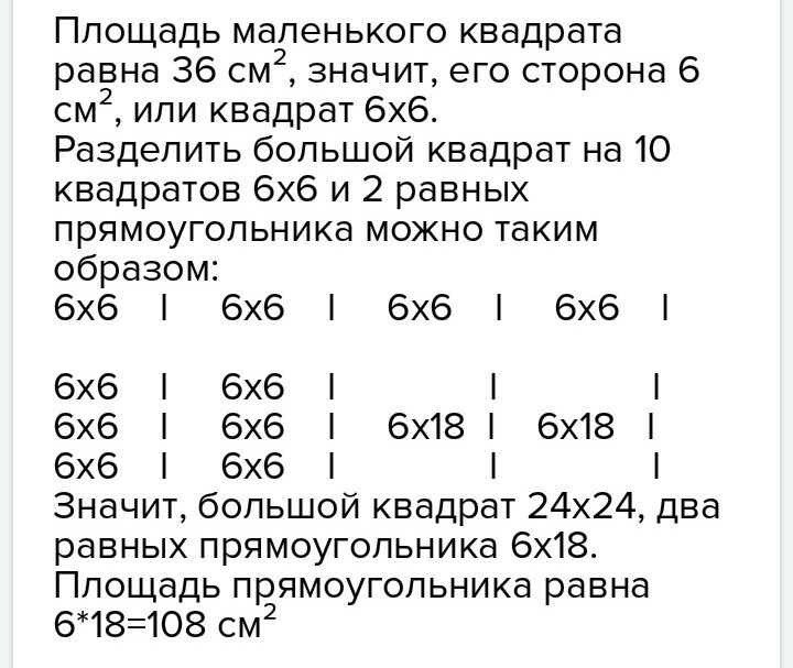 Квадрат разделён на 10 маленьких равных квадратов и три равных прямоугольника найдите площадь прямоугольника если площадь маленького квадрата равна 37 см